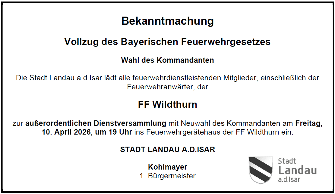 Sie sind hier: Startseite » Außerordentliche Dienstversammlung der FF Wildthurn mit Wahl des Kommandanten