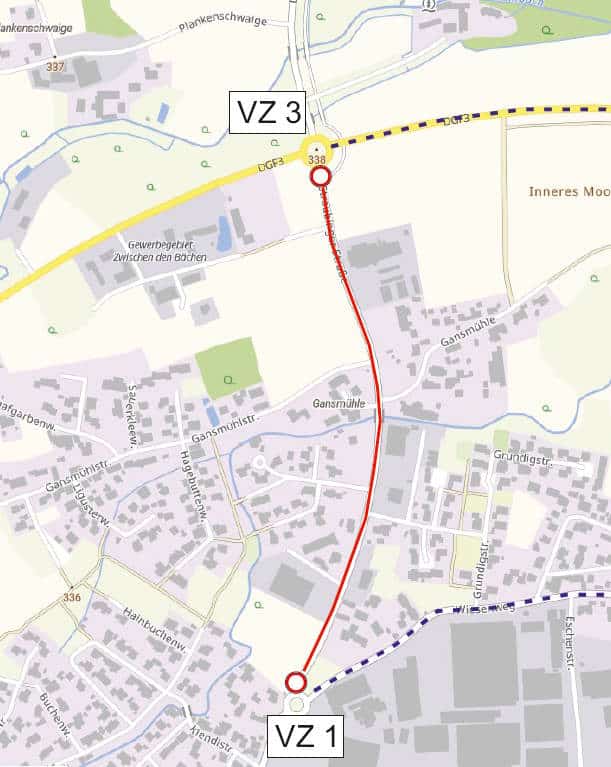 Von Dienstag, 07.04.2026 bis Freitag, 10.04.2026 ist die nördliche Straubinger Straße zwischen dem Kreisverkehr an der DGF3 und dem Kreisverkehr an der Einmündung des Wiesenwegs für Reparaturarbeiten für den Durchgangsverkehr gesperrt.