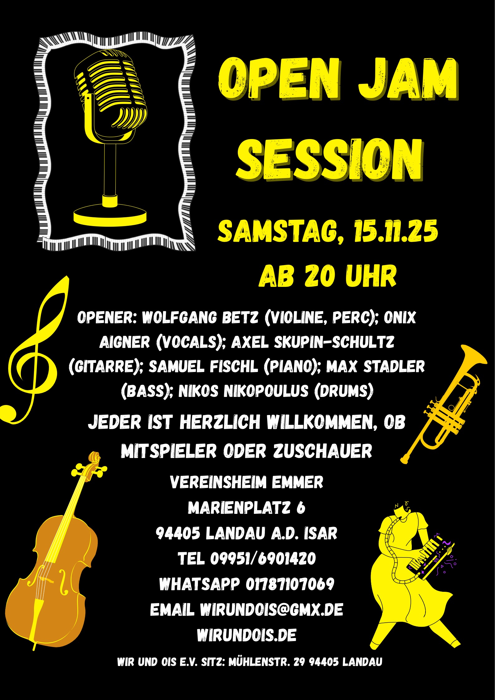 Im Anschluss: packt eure Musikinstrumente aus und los geht’s. Wir freuen uns auf viele Musiker/innen und natürlich auch auf ein großes Publikum.