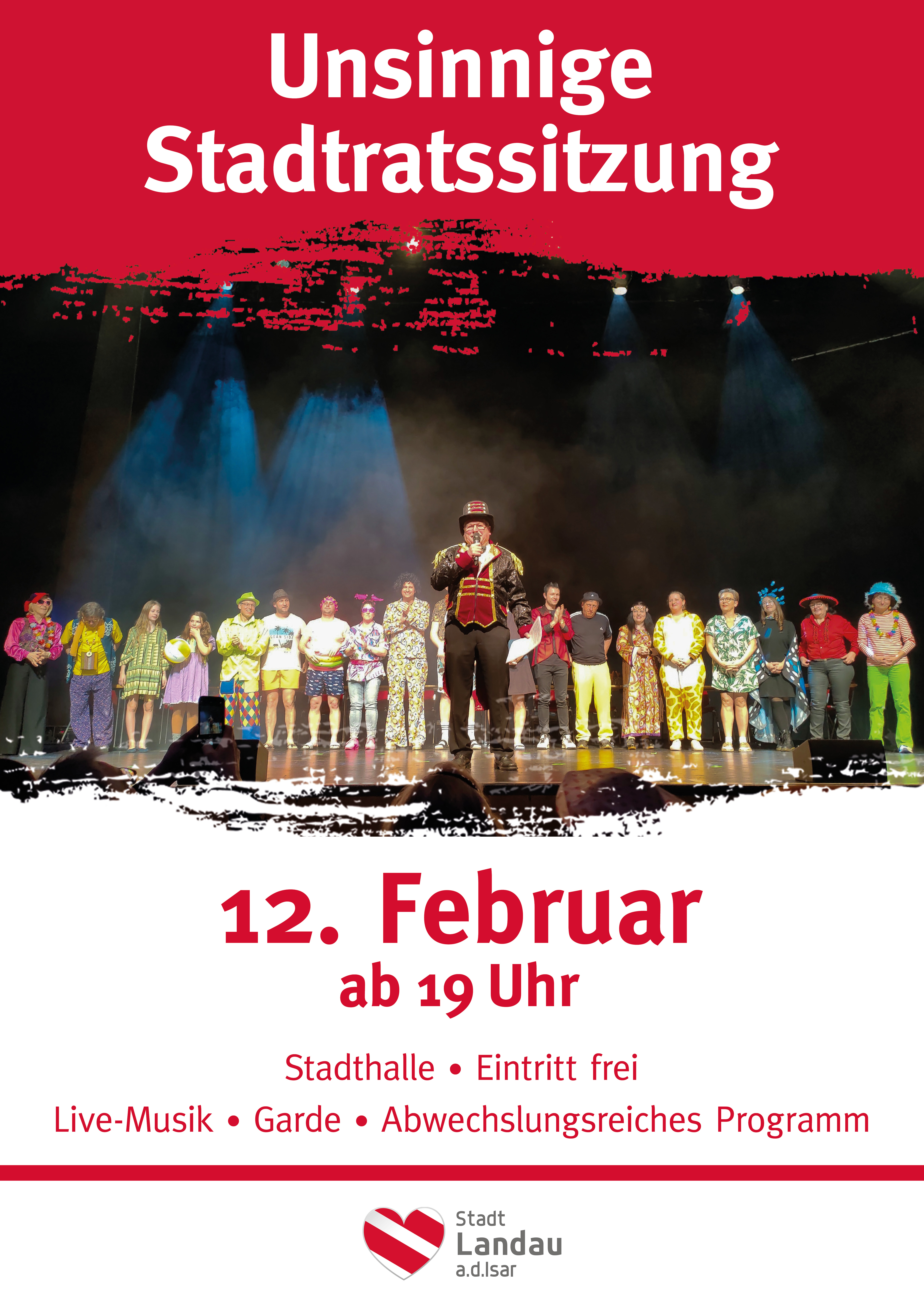 Es werden neben den drei Bürgermeistern fast alle Stadträte teilnehmen. Die Sitzung wird durch die beiden Garden (SSC Landau und der Prinzengarde aus Dingolfing) und durch eine Live-Band um Andreas Stauber aufgewertet. Neben den Stadtratsfrauen werden auch eine Gruppe aus Stadtratsmännern mitmachen. Die drei Bürgermeister werden natürlich auch ihr Faschingskönnen darbieten. Es gibt zur Sitzung ein abwechslungsreiches Programm bei dem jeder Besucher unterhalten wird. Nach der Sitzung gibt es noch einen Barbetrieb. Für Ihr leibliches Wohl wird ebenfalls gesorgt. Wir freuen uns auf Ihr Kommen. Einlass: 18:00 Uhr Beginn: 19:00 Uhr