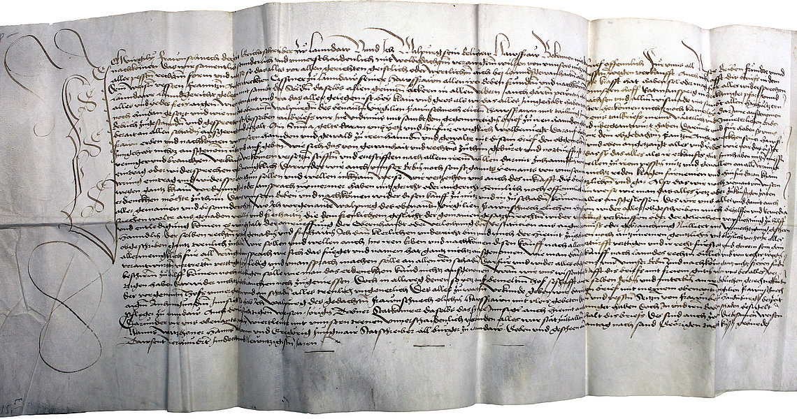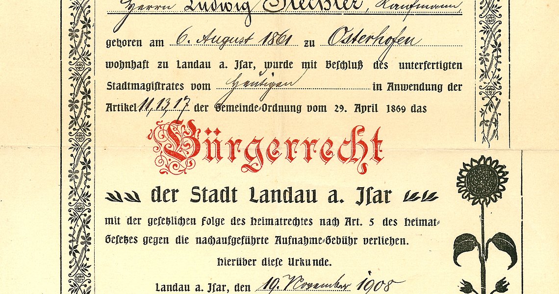 Eine großzügige Schenkung des Vereins „Die Förderer“ im Jahr 2022 umfasst zahlreiche wertvolle Urkunden und historische Dokumente aus Landau und Umgebung ab dem Jahr 1471. Ein großer Teil der Unterlagen stammt von der Landauer Bürgerzeche, einer exklusiven Vereinigung, die sich vor allem religiösen, sozialen und wohltätigen Zwecken widmete. Zur Schenkung gehören aber z.B. auch Zunftbücher der Landauer Schuhmacher oder ein Büchlein, in dem der lateinische Schulmeister von Landau vor 400 Jahren seine Einnahmen verzeichnete.