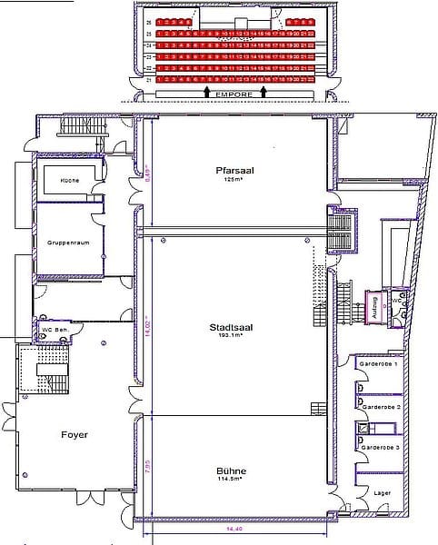 Derzeit wird die Stadthallentechnik erneuert. Gefördert von der Beauftragten der Bundesregierung für Kultur und Medien.