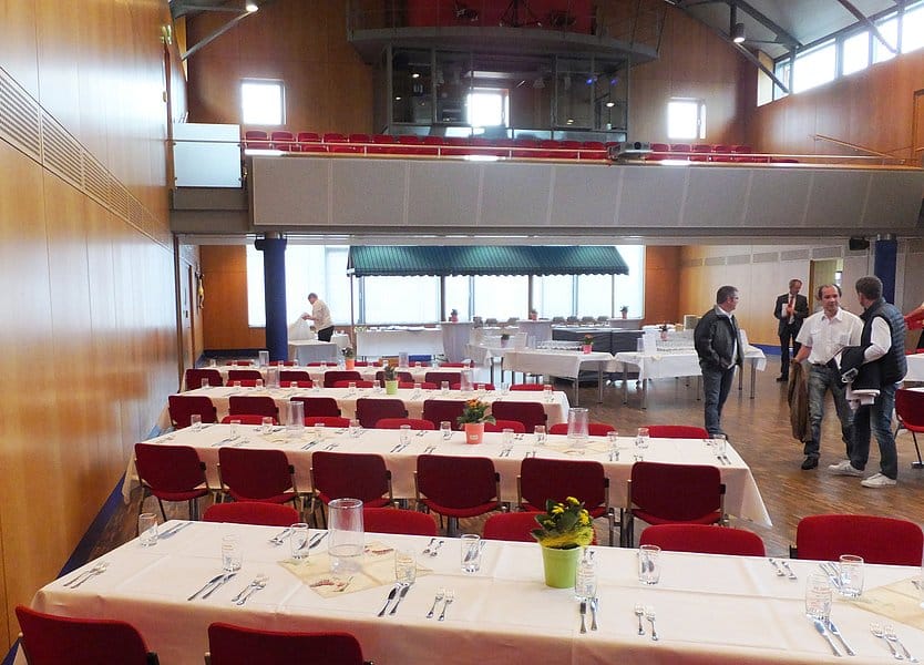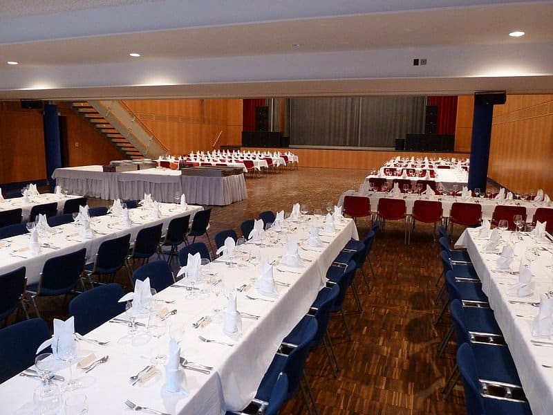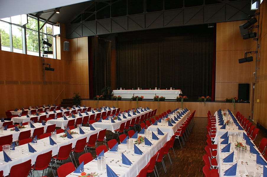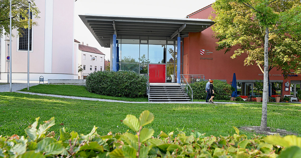 Die Stadthalle liegt in der Oberen Altstadt neben der Stadtpfarrkirche und am angrenzenden neugestalteten Stadtpark.